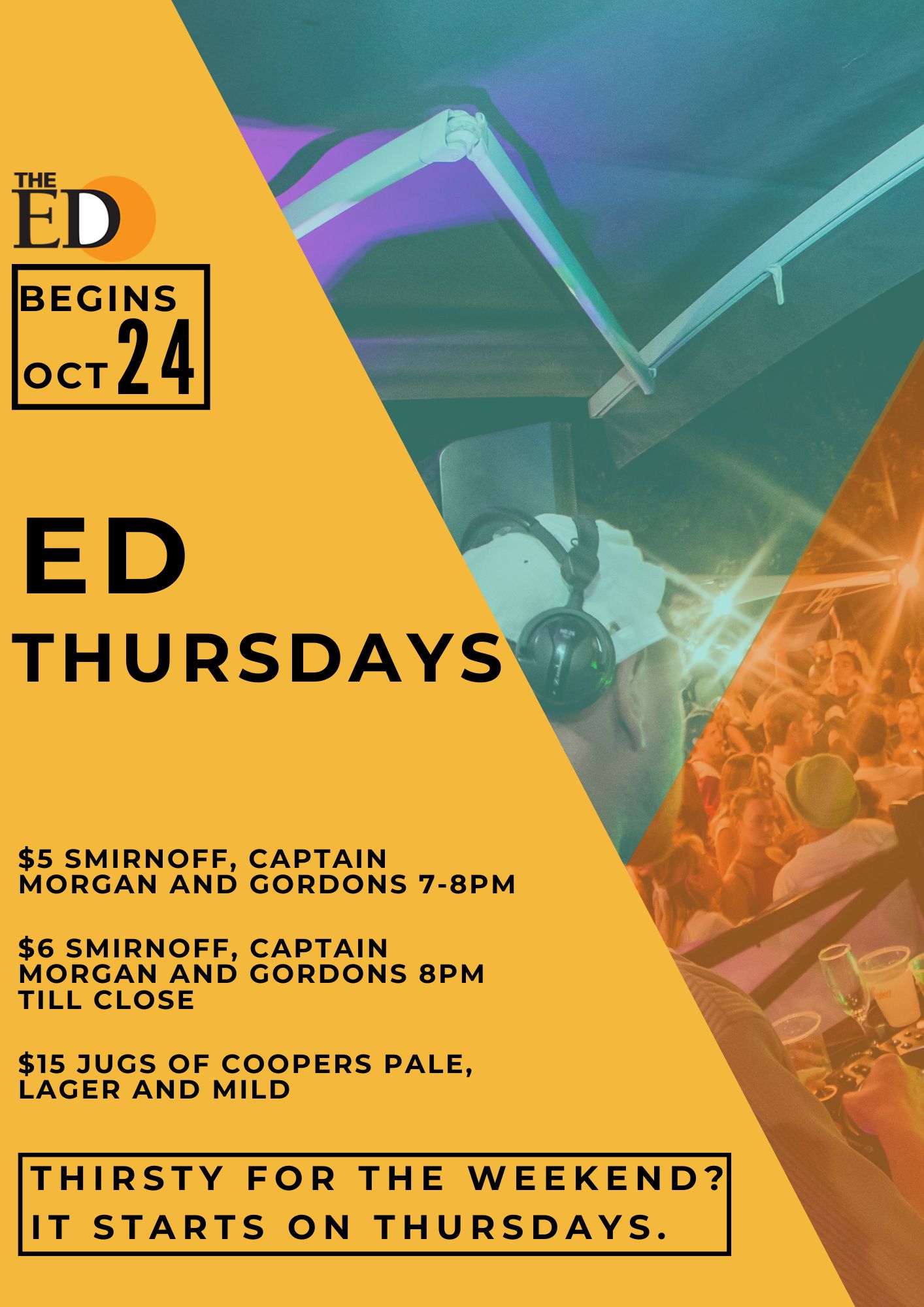 We have a combination of live acoustic music and DJs every Thursday to Sunday.